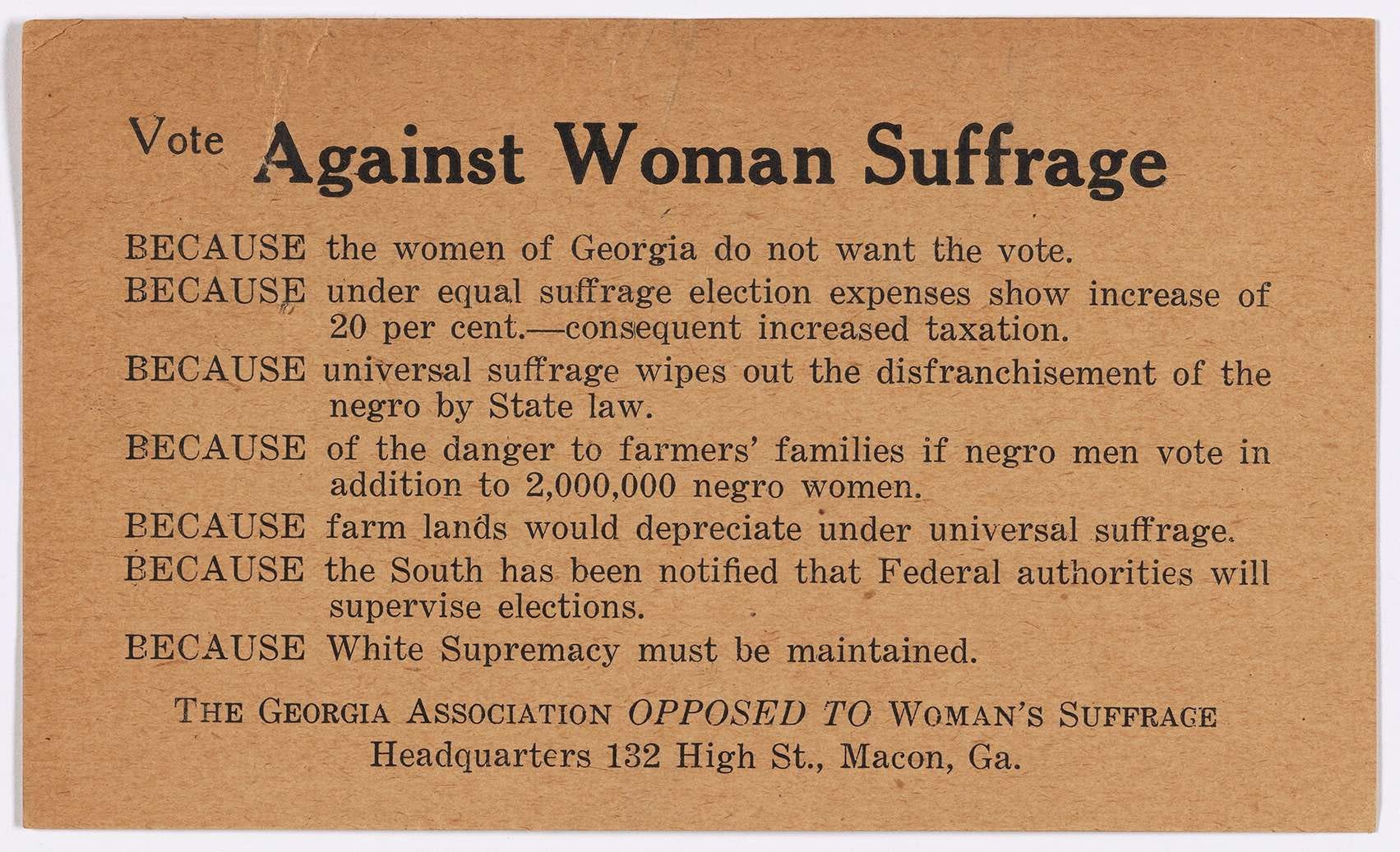 You don't have to take my word for any of this. Just ask the Georgia Association Against Woman's Suffrage if you’re being co-opted into consenting to your own demise.